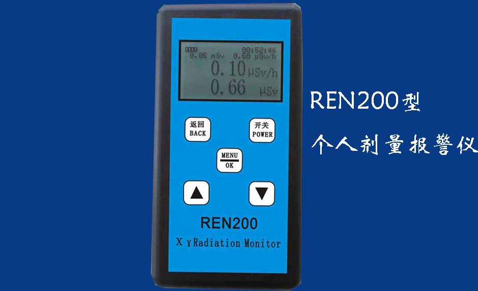 REN200A型X、γ辐射个人剂量当量HP(10)监测仪(简称:个人剂量报警仪)内置高灵敏度盖格计数管为探测器,主要用来监测各种放射性工作场所的X、γ以及硬β射线的辐射,具有响应快,测量范围宽的特点。能显示工作场所的剂量当量率和累积剂量,更换电池时,日期及累积数据能永久保存。可选配RenRiPersonal个人剂量管理软件,该软件可存储多个人的历史数据,能记录日累积、月累积、年累积、辐照时长、计算平均剂量率、扣除或不扣除本底辐射,且以文字和图谱的方式展现数据。广泛应用于核电站、加速器、钢铁、化工、同位素应用、工业X、γ无损探伤、放射医疗、钴源治疗、γ辐照、放射性实验室、核设施周围环境监测等领域中的工作人员进行个人安全防护监测及放射性提示。&nb